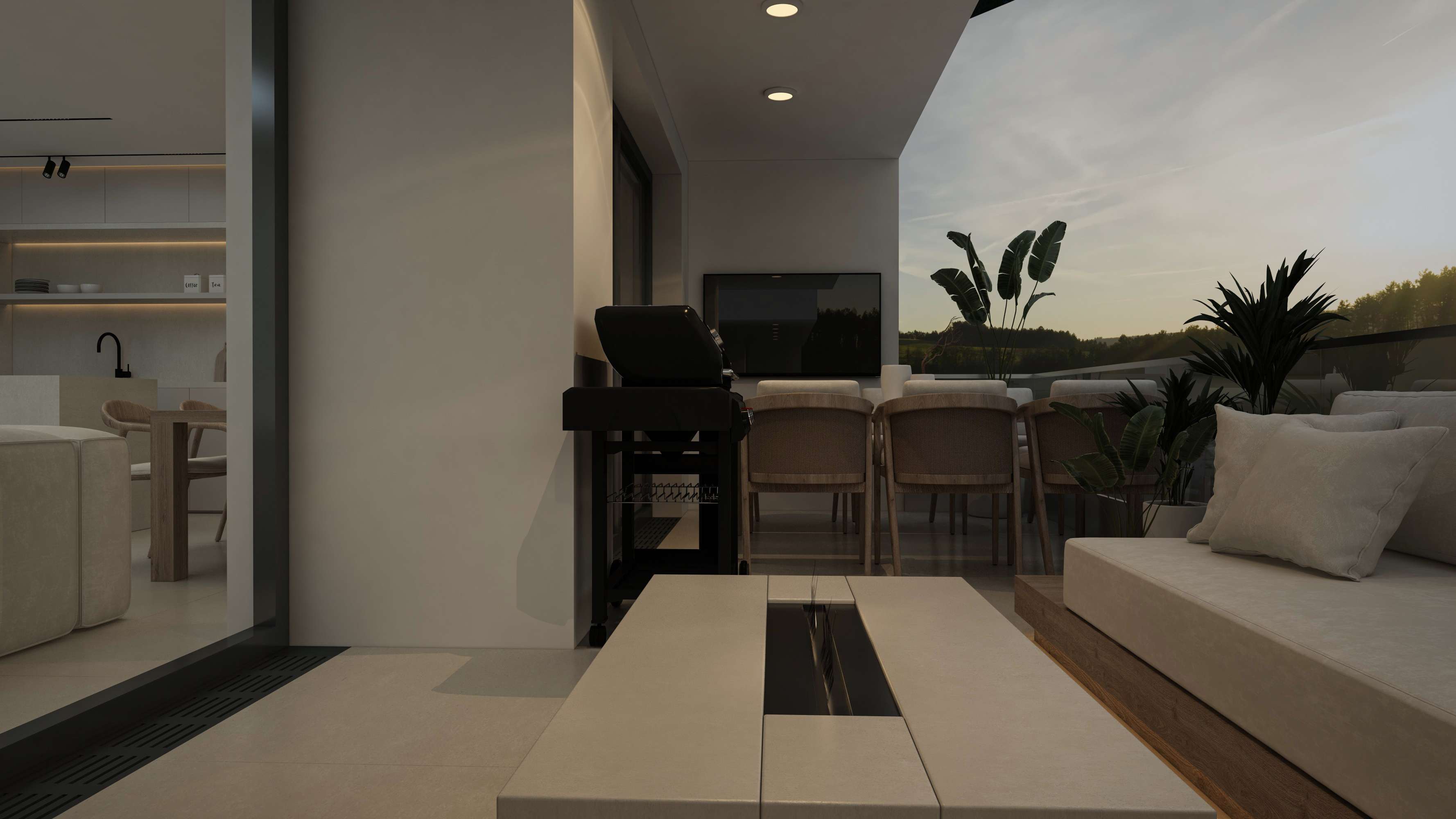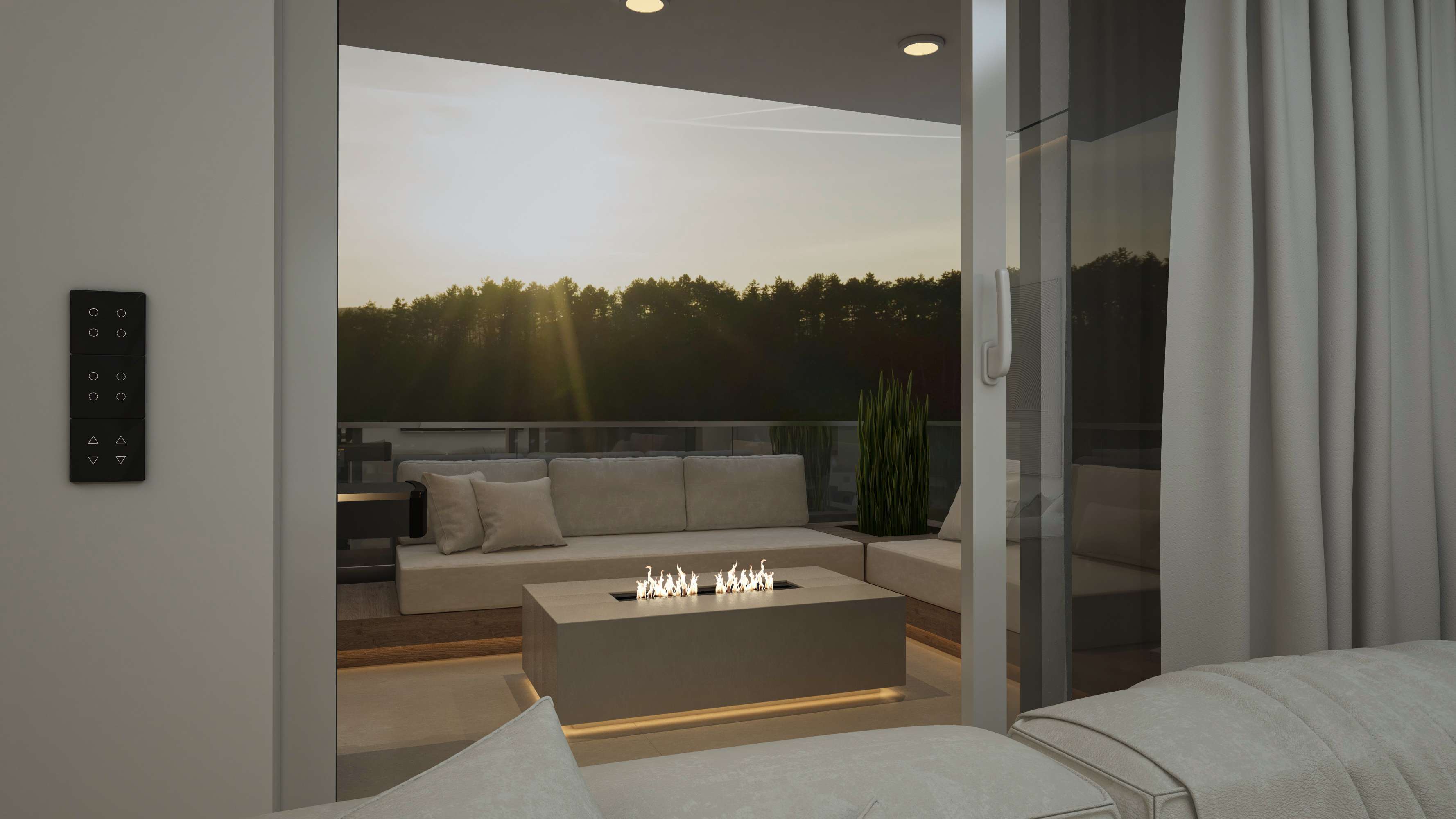 Von hier aus gelangen Sie auch auf den grossen nach Süden ausgerichteten, teilüberdachten Balkon, hier können Sie sich vom Alltag erholen.