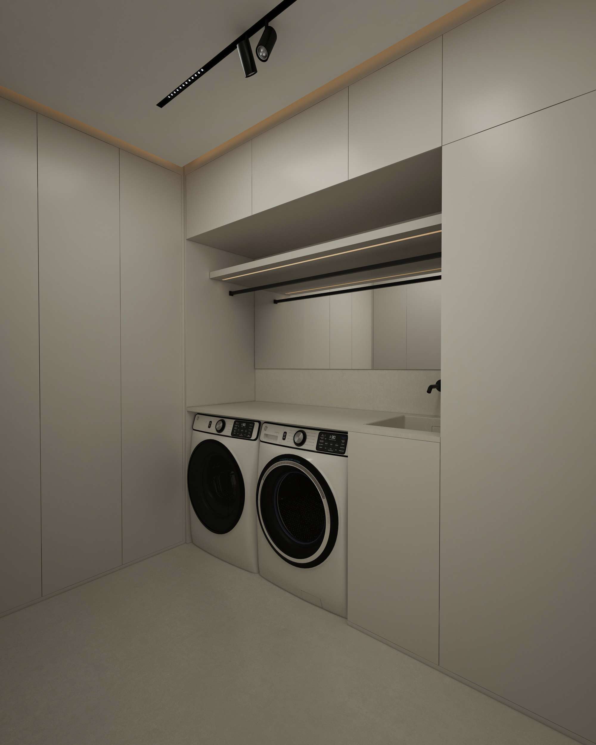 Ein kleiner Hauswirtschaftsraum mit Platz für eine Waschmaschine und Trockner sorgt ebenfalls für ein angenehmes Wohnen..