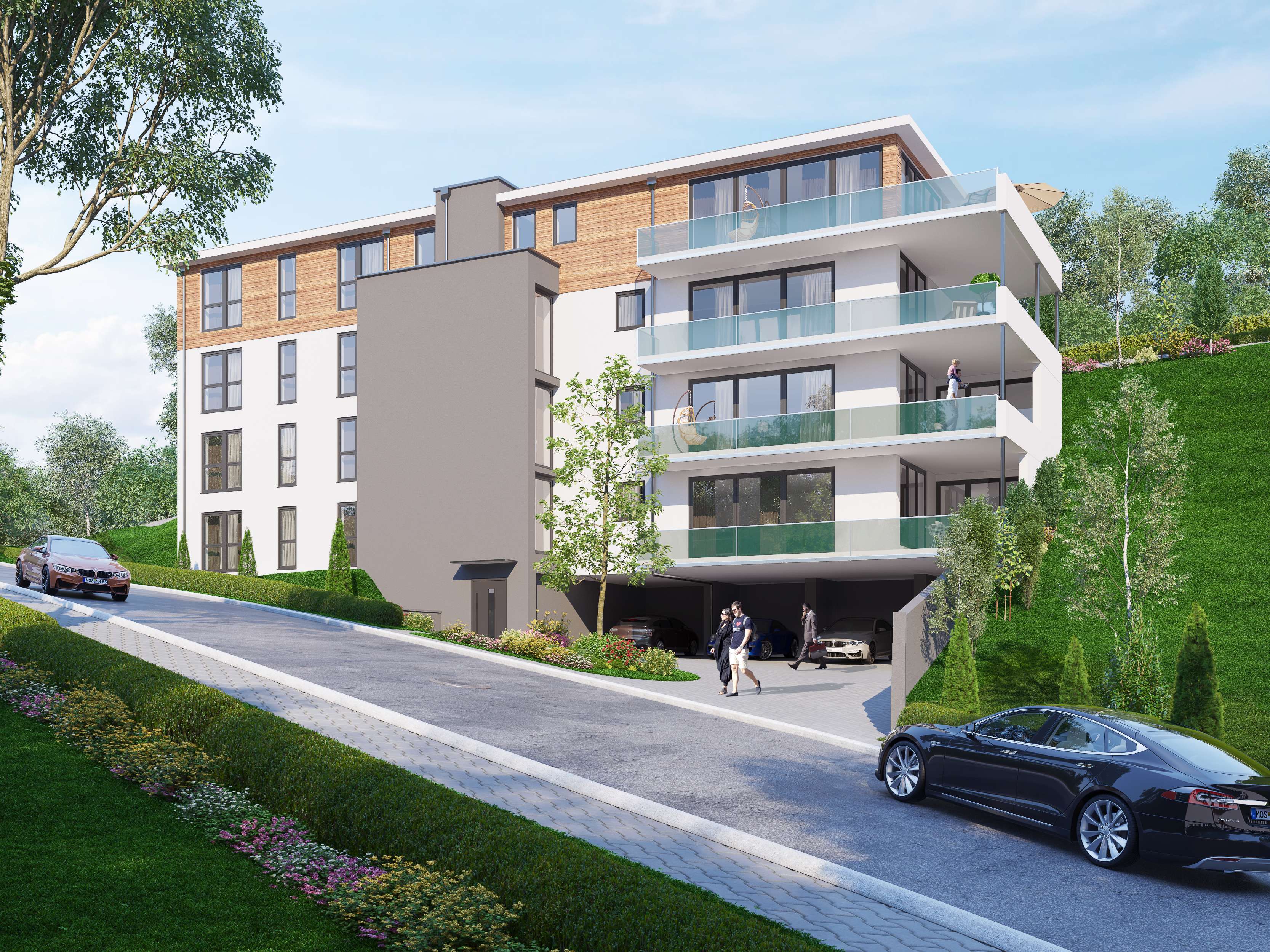 Jeder Wohnung ist ein Garagenplatz und 1 Stellplatz zugeteilt.