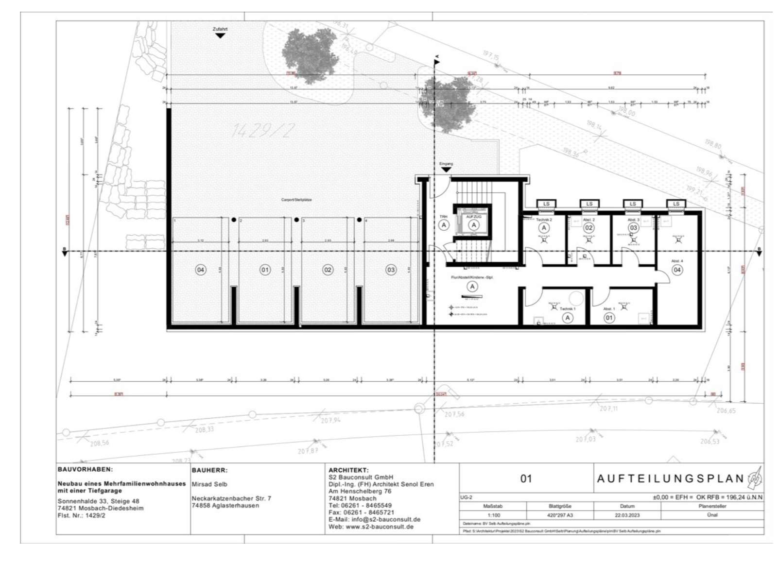 Jeder Wohnung ist ein Garagenplatz und 1 Stellplatz zugeteilt.