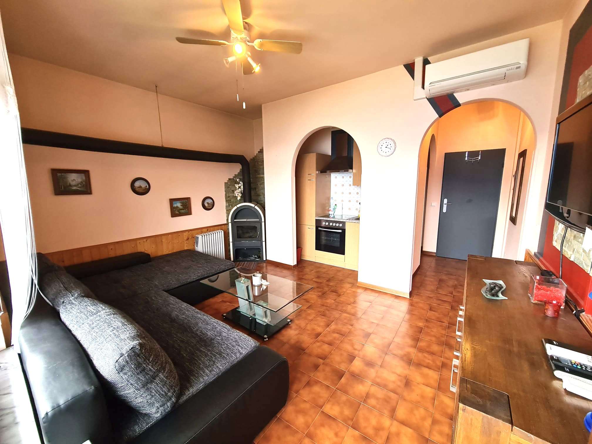 Zusätzlich ist eine Ofenheizung vorhanden.