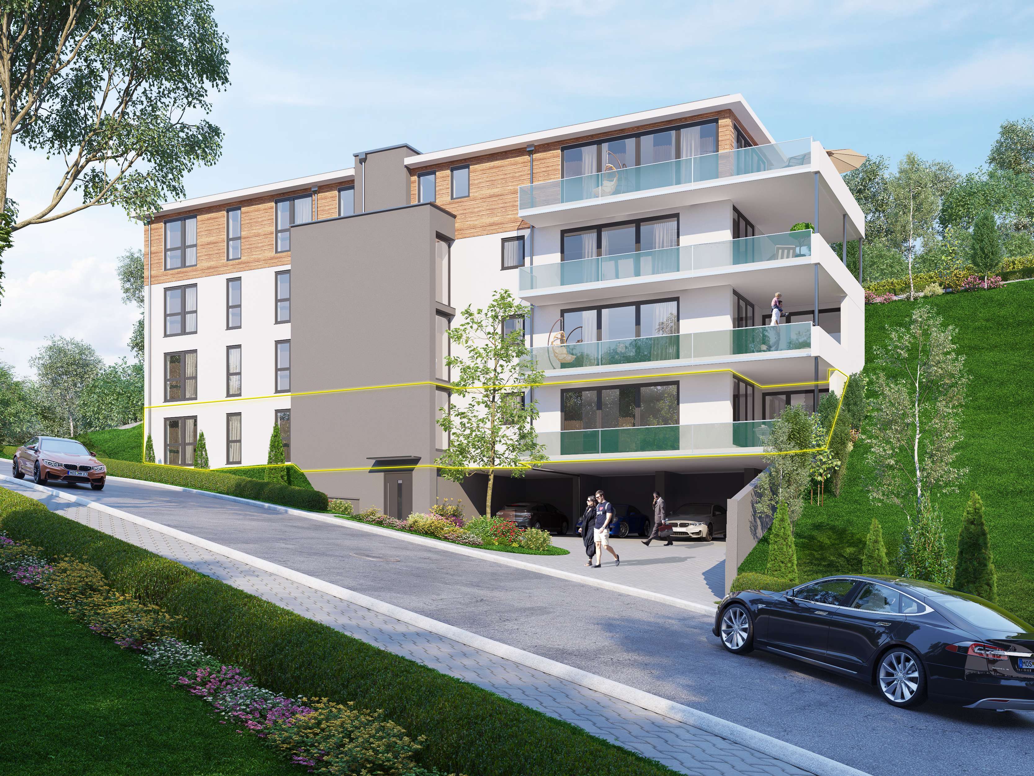 Diese gleichen sich dem natürlichen Gelände des sonnigen Südhangs an.