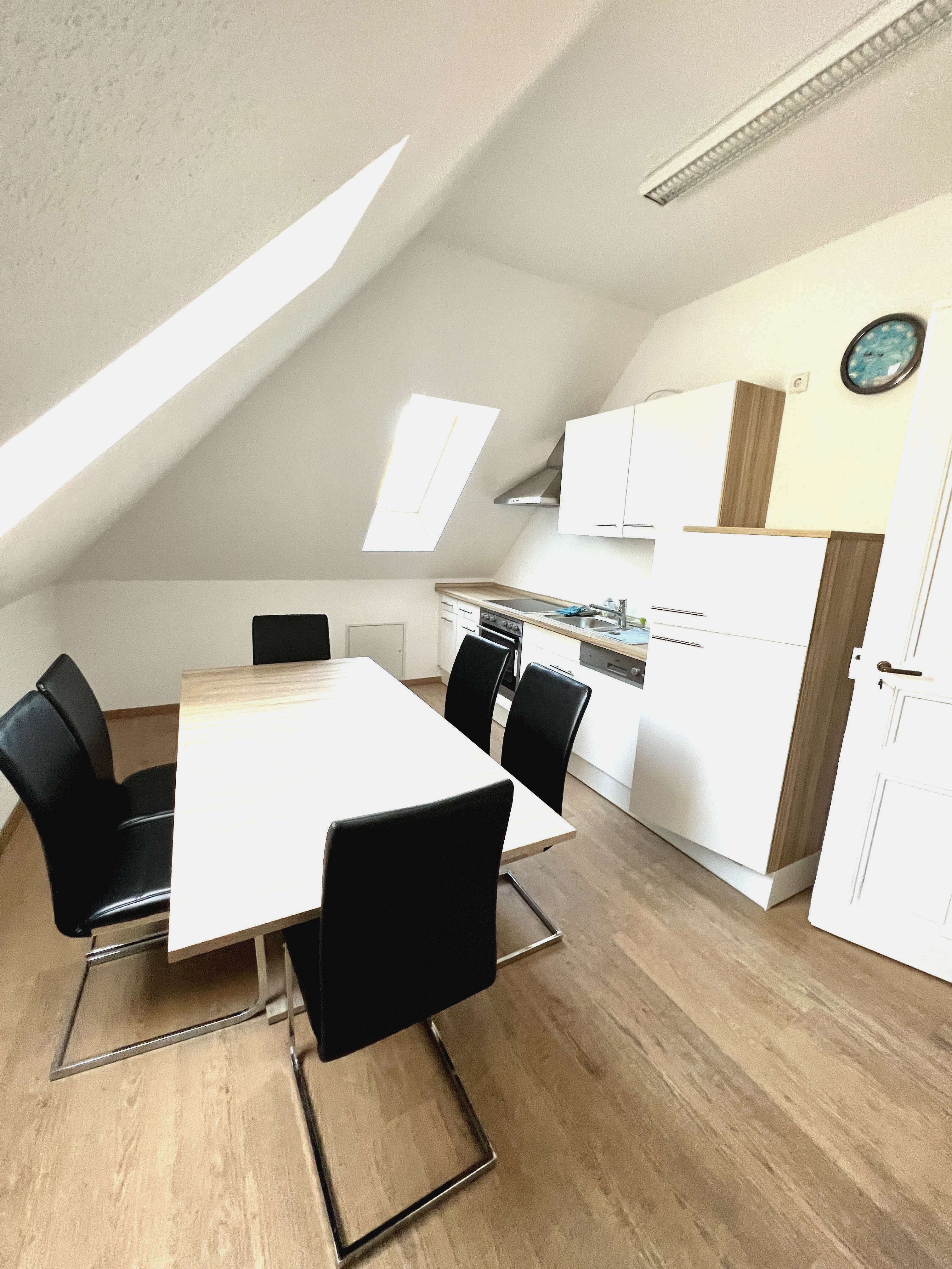 – Küche mit Herd, Ceranfeld, Kühlschrank und Spülmaschine