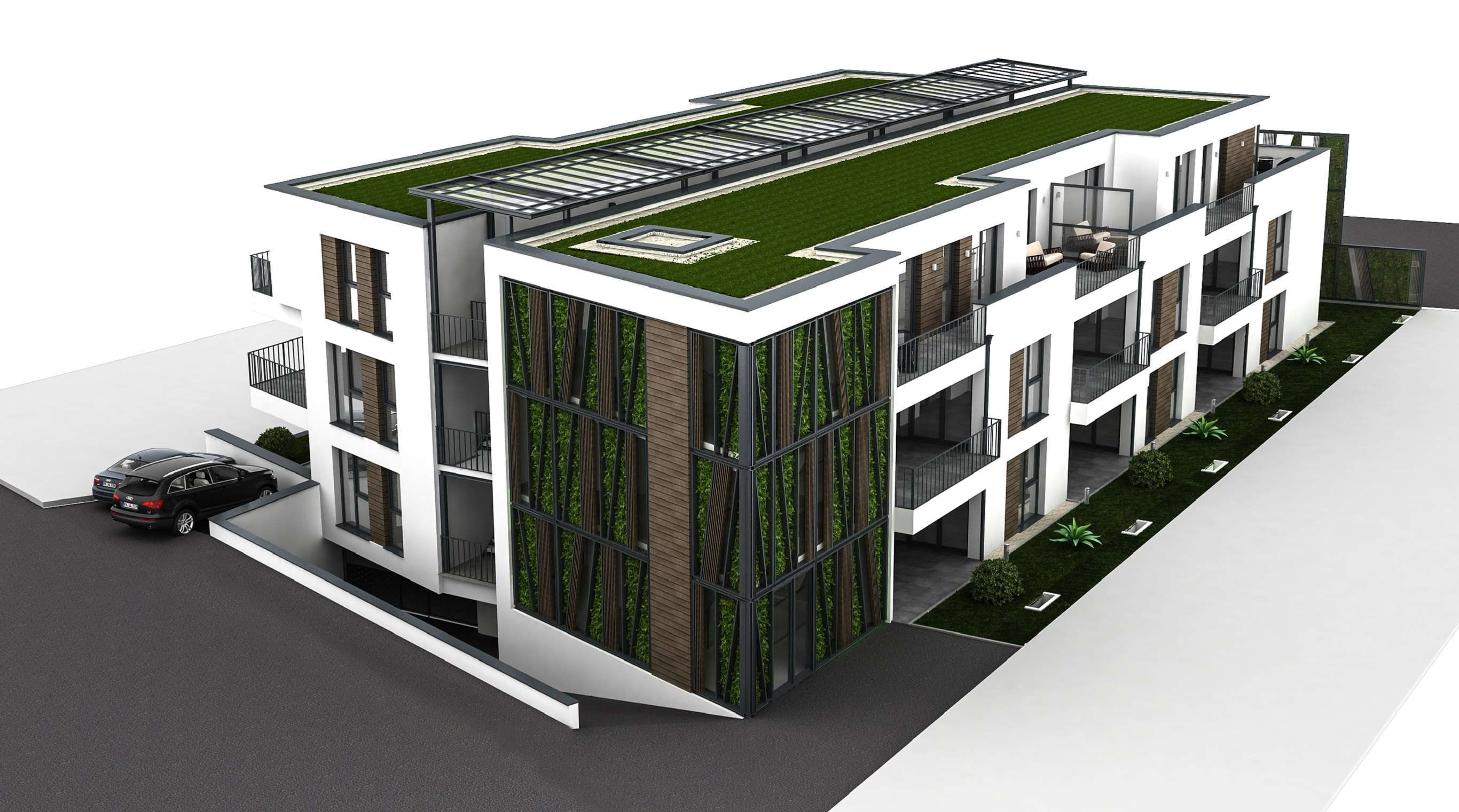 Geplant ist ein Top modernes und hochwertiges 16 Familienhaus mit Fahrstuhl und Tiefgarage inklusive 24 Tiefgaragenstellplätzen sowie 7 Aussenstellplätzen.